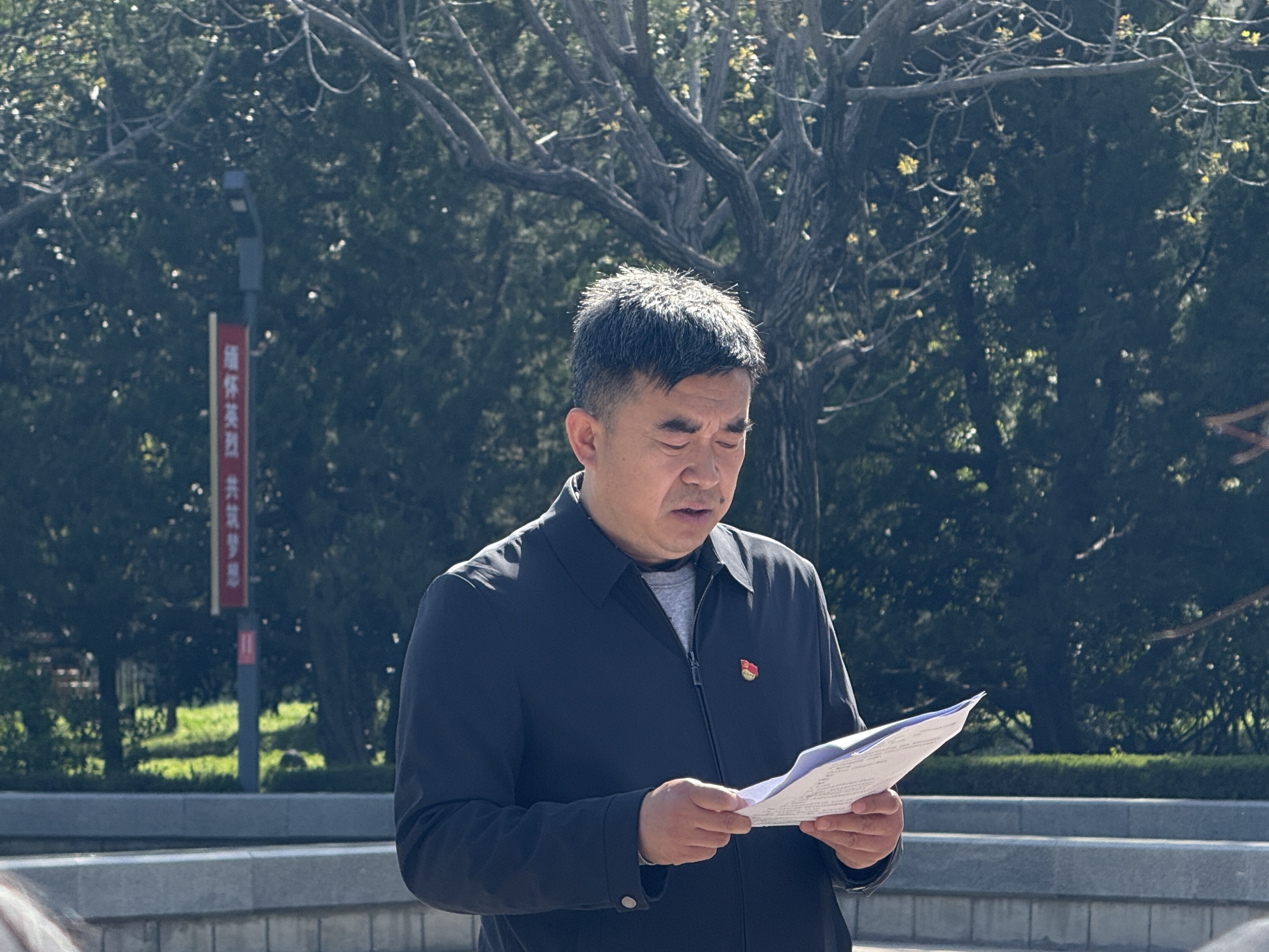 王云在“革命烈士永垂不朽”纪念石前讲授“赓续英烈精神 树立和践行正确政绩观 赋能离退休工作”专题党课,引导全体人员从英烈精神中汲取奋进力量。