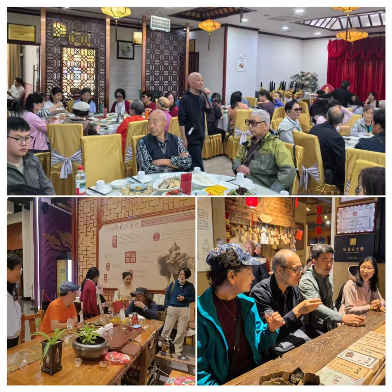 随后,大家前往本次活动的第二站——茯茶小镇。这座小镇以茯茶文化和关中民俗文化为核心,集茯茶产业、文旅休闲、非遗体验于一体,被誉为承载千年茯茶文化的“活化石”。老教师们先后参观了中国茯茶文化博物馆、茯茶手筑体验馆等景点,在博物馆中深入了解茯茶的千年历史、丝路渊源以及“金花奥秘”,大家兴致勃勃地参与茯茶品鉴,品味茯茶背后的匠心传承。沿途,大家还品尝了地道的关中特色小吃,在欢声笑语中感受民俗文化的独特韵味。